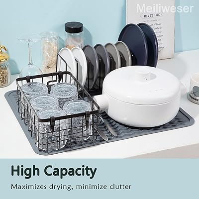 Buy Meiliweser Silicone Dish Drying Mat Xl 20 X 16 Heat Resistant Eco Friendly Easy Clean Silicone Drying Mat Large For Kitchen Counter Sink Refrigerator Drawer Liner Gray Online In Turkey B08rxp6j58 from images-na.ssl-images-amazon.com I didn't know there was any other way. Pour laundry detergent and a capful of white vinegar in with the mat to clean and sanitize. Put on oven mitts, scrub them under water with a sponge or towel, then dry them with a hair dryer or towel. Then brush or scrub off any little gray gooey spots that have developed, rinse with very hot water, and leave it in the sink to dry completely.". Scrubbing hard will damage your mat. Soak the carpet (s) in very hot water with a squeeze of fresh lemon juice for 10 minutes. Are dish drying mats good? Rinsing the dish rack with soapy water each night before you start cleaning the dishes will prevent the buildup from hard water.⁴.